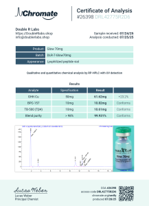 Glow 70mg | DLR-7-Glow70mg | 07/25/25 | 99.931% | GHK-CU 61.62mg BPC-157 10.82mg TB500 (TB4) 10.61mg | Chromate |