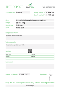 IGF1-LR3 1mg | March batch | 03/11/25 | 99.84% | 1.03mg | Janoshik |