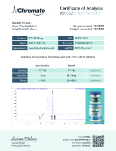 PT-141 10mg | DRL-11-P41-10 | 11/19/25 | 99.406% | 10.73mg | Chromate |