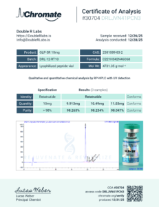 GLP3-RT 10mg | DRL-12-RT10 | 12/28/25 | 98.263% 98.234% 98.047% | 9.913% 10.49% 11.03% | Chromate |