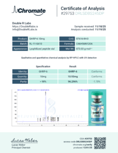 GHRP-6 10mg | RL-11-G610 | 11-19-2025 | 96.296% | 10.93mg | Chromate |