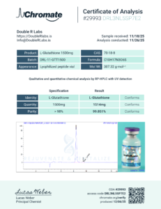 Glutathione 1500mg | DRL-11-GTT1500 | 11/26/25 | 99.851% | 1514mg | Chromate |