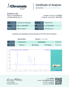 Tesamorelin 10mg | DRL-12-TEAS10 | 12/22/25 | 97.092% 96.766% | 10.78mg 10.59 | Chromate |